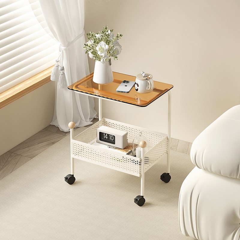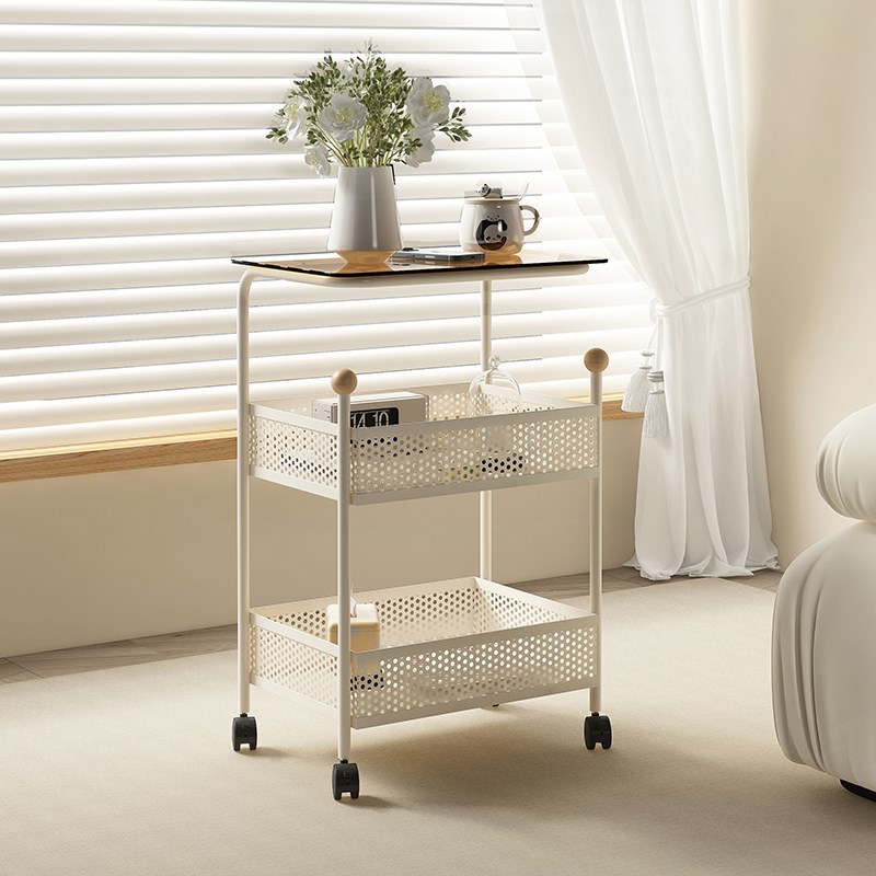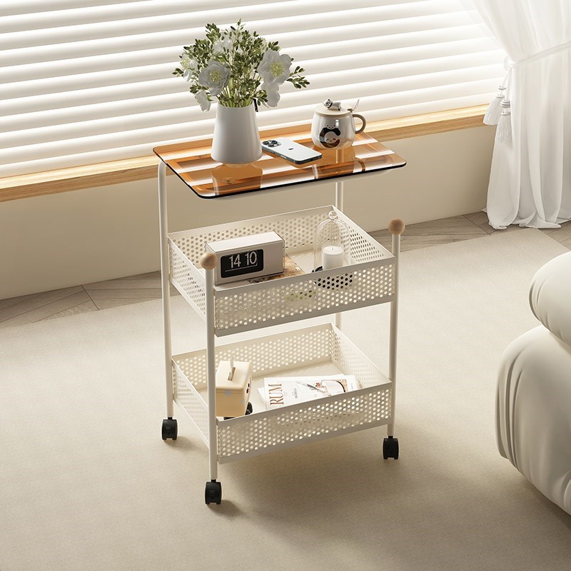 奶油风客厅沙发边几简约小茶几网红小推车收纳架铁艺床头柜置物架