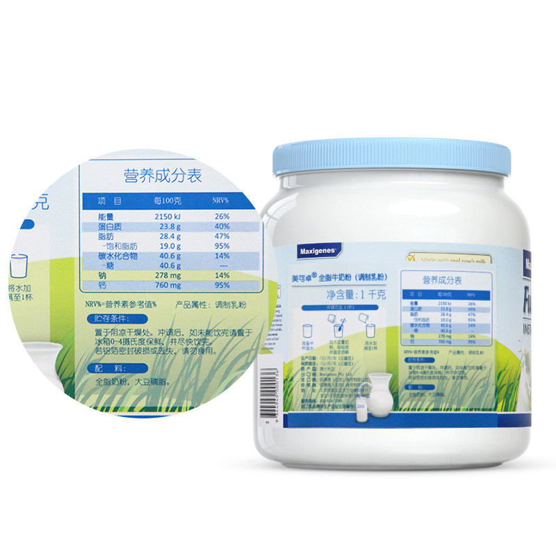 maxigenes/美可卓澳洲进口儿童成人奶粉蓝胖子全脂牛奶粉调制乳粉