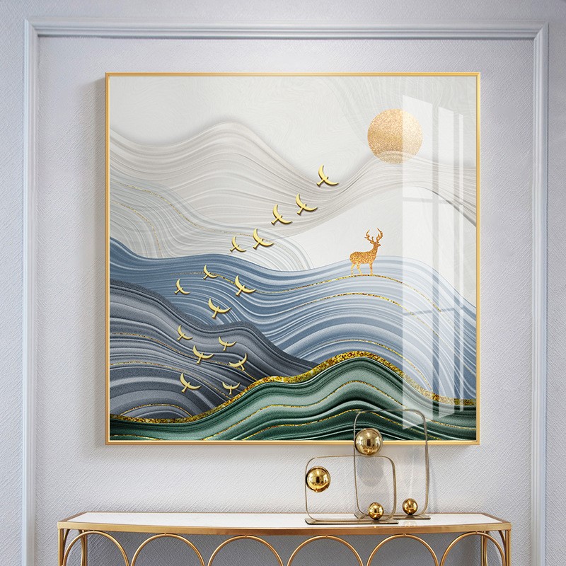 现代轻奢餐厅装饰画现代简约挂画客厅沙发背景墙画正方形麋鹿壁画