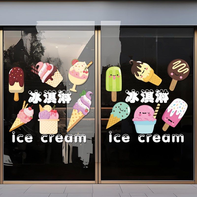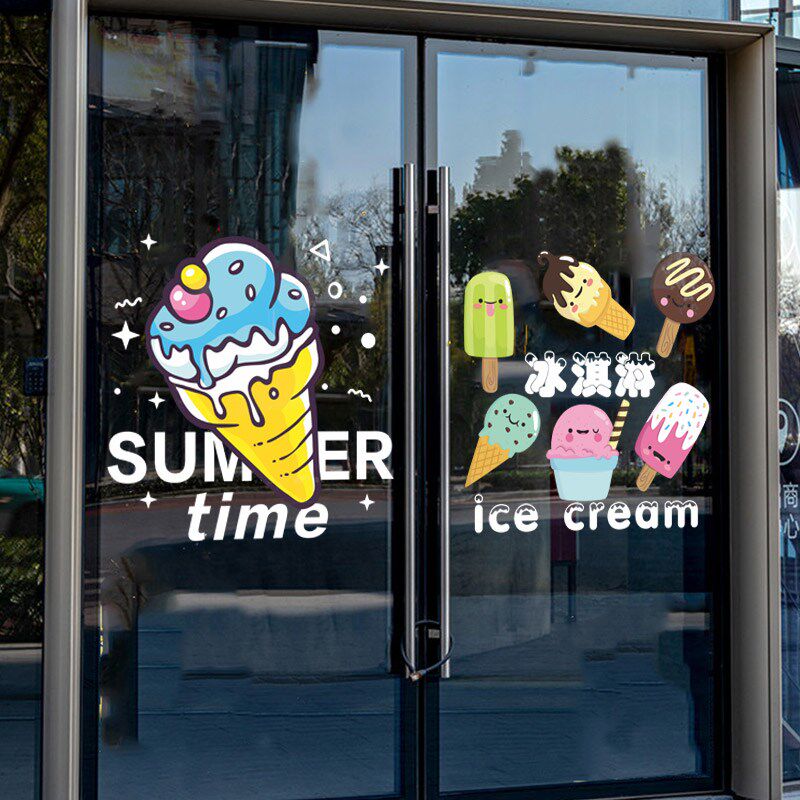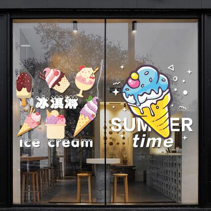 卡通冰淇淋饮料店面玻璃门贴纸甜品奶茶店铺橱窗装饰冰激凌静电贴