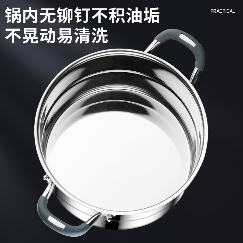 无铆钉钢盖特厚加高316L不锈钢蒸锅双层蒸笼家用一体成型防烫汤锅