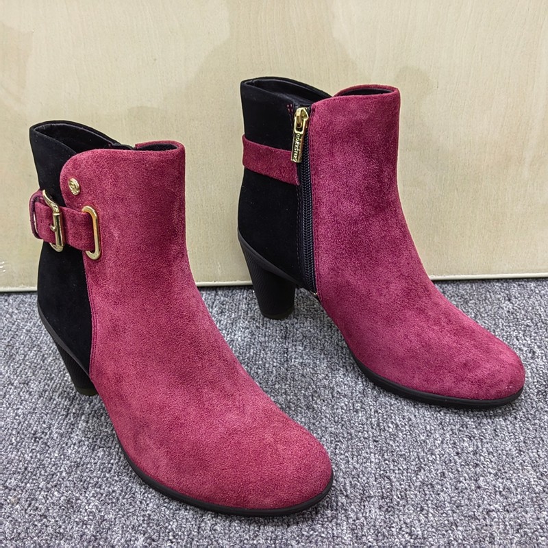 35码撤柜断码清仓处理磨砂皮短靴女秋冬粗跟侧拉链百搭气质时装靴
