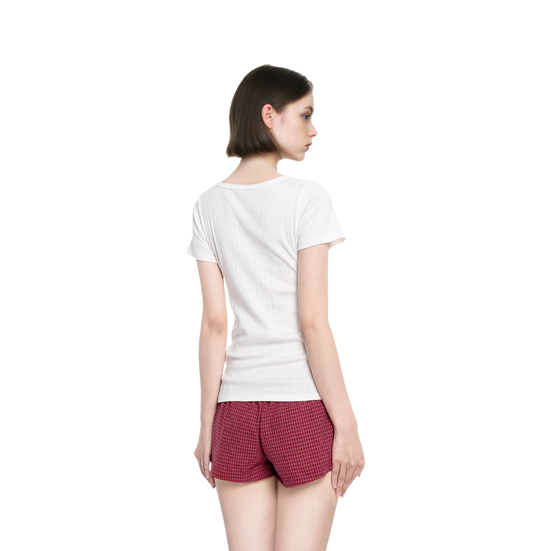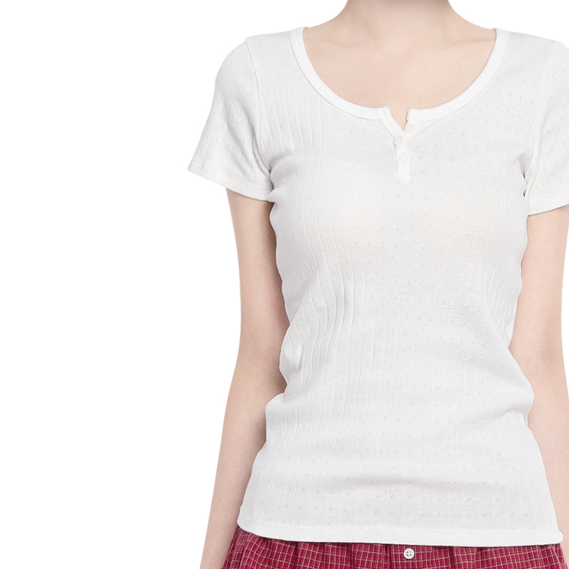 BM短袖女2025新款夏季纯色孔眼圆领t恤高级感今年流行的漂亮上衣