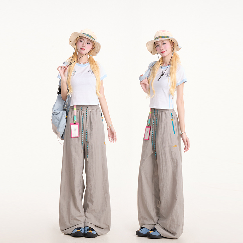 NERESUM复古撞色爱心印花短款短袖女美式潮牌正肩辣妹修身上衣T恤