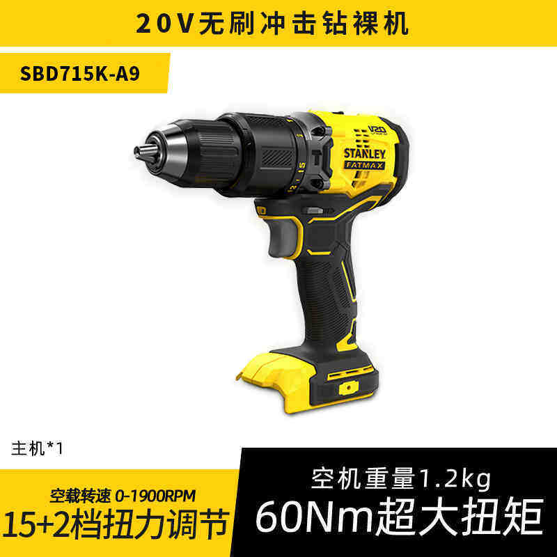 史丹利20V锂电无刷冲击钻螺丝刀家用多功能手电钻SBD710D2K/715K