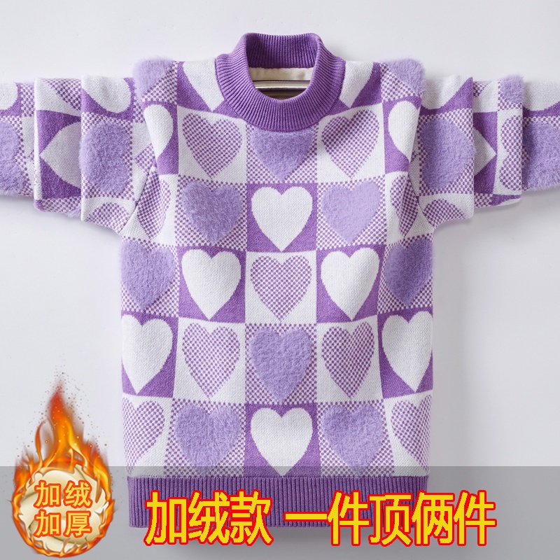 女童加绒加厚毛衣秋冬2025韩版儿童打底衫中大童针织上衣洋气童装