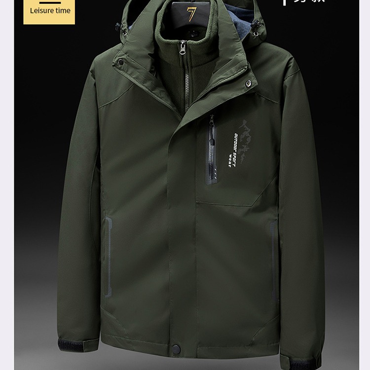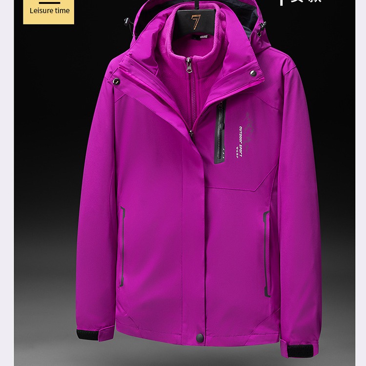 冬季户外冲锋衣男女三合一两件套加绒加厚深紫色志愿者工作服印字