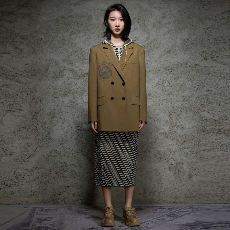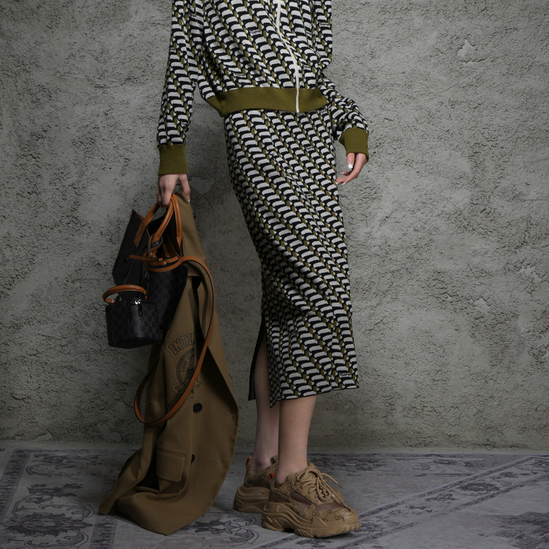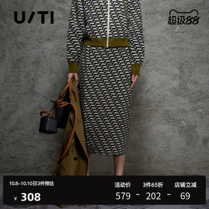 U/TI满版小狗撞色半身裙女设计感包臀针织开衩裙尤缇时尚秋季新款