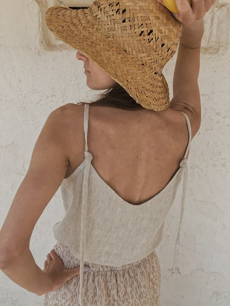 法式亚麻吊带上衣设计感女夏季V领露背打底背心高级棉麻宽松无袖