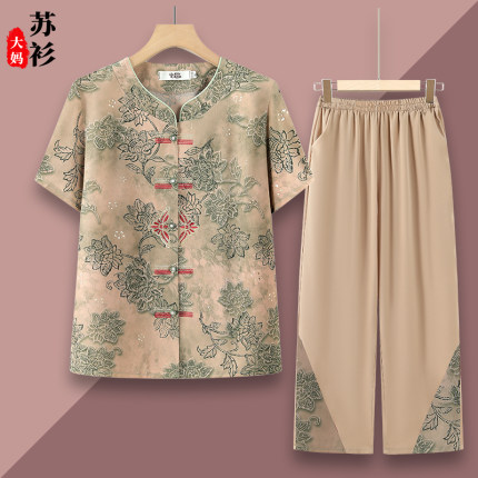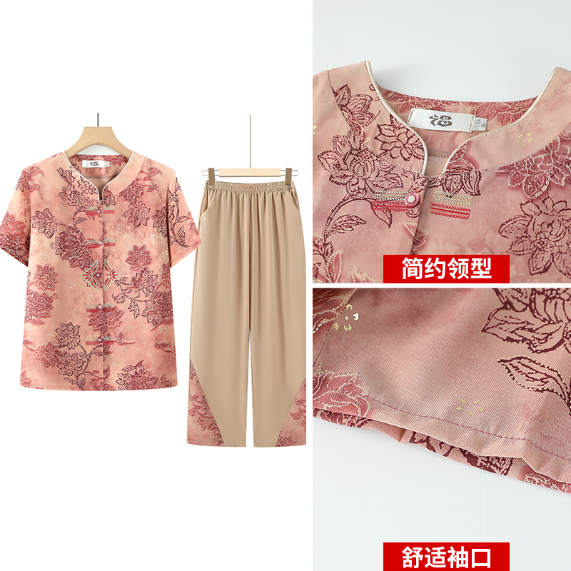 中老年人夏季女装洋气套装奶奶国风两件套妈妈夏装短袖老太太唐装