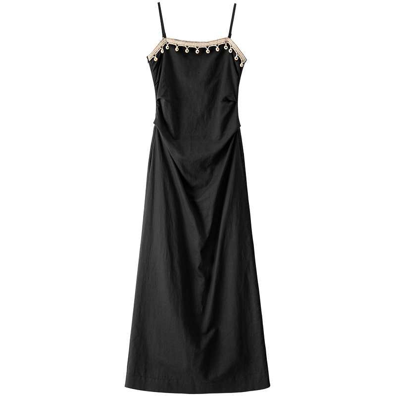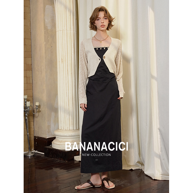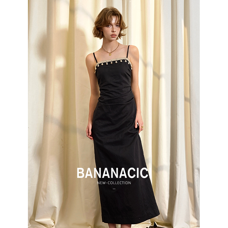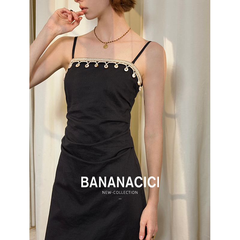 BANANA CICI2025年夏季新款度假风棉麻抹胸肩带可拆卸吊带连衣裙
