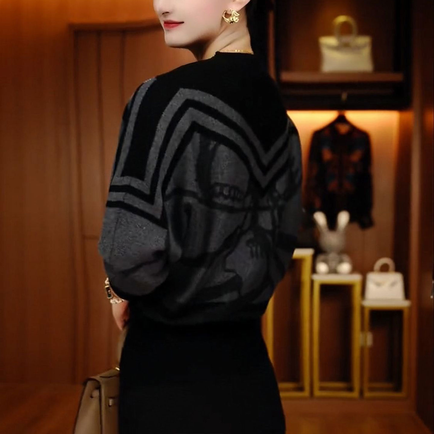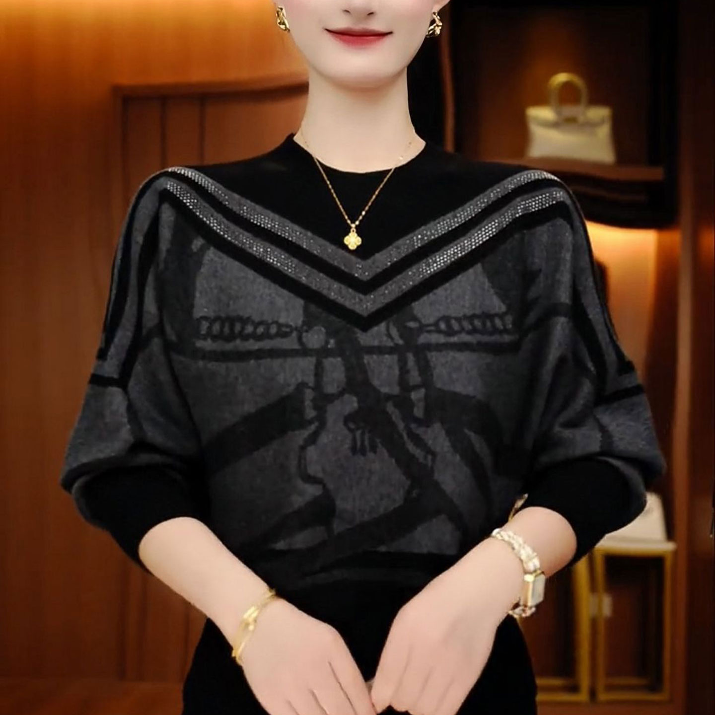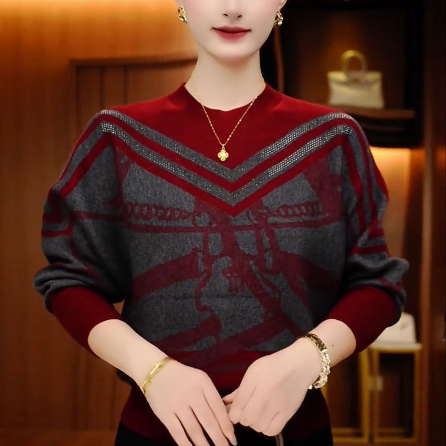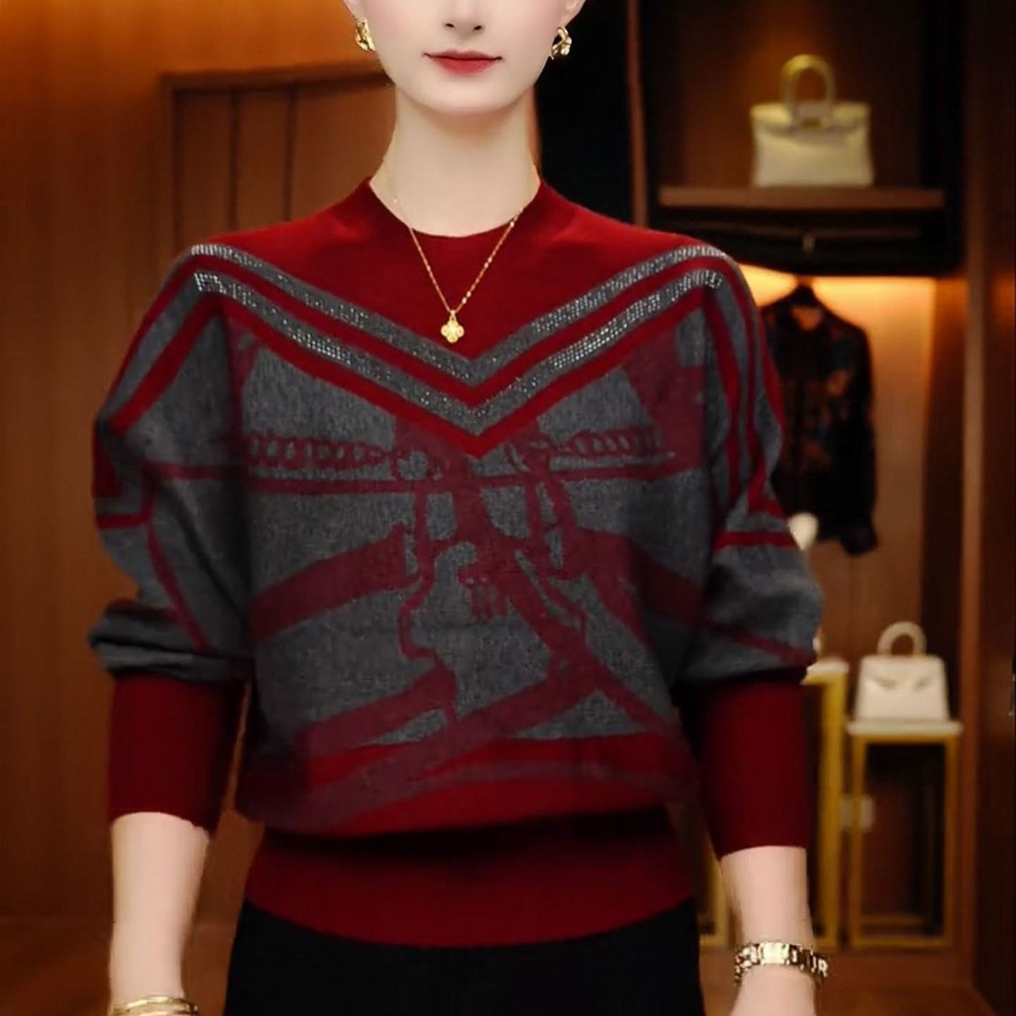 妈妈装时尚提花烫钻长袖针织衫2025秋冬新款宽松显瘦百搭打底衫女