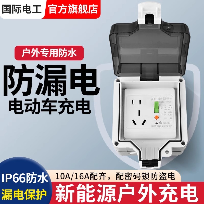 新能源16a充电桩配电箱室外空开漏电保护防雨盒明装户外防水插座