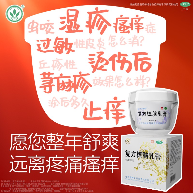 【宝树堂】复方樟脑乳膏100g*1瓶/盒湿疹荨麻疹过敏神经性皮炎止瘙痒烧烫伤膏药疼痛