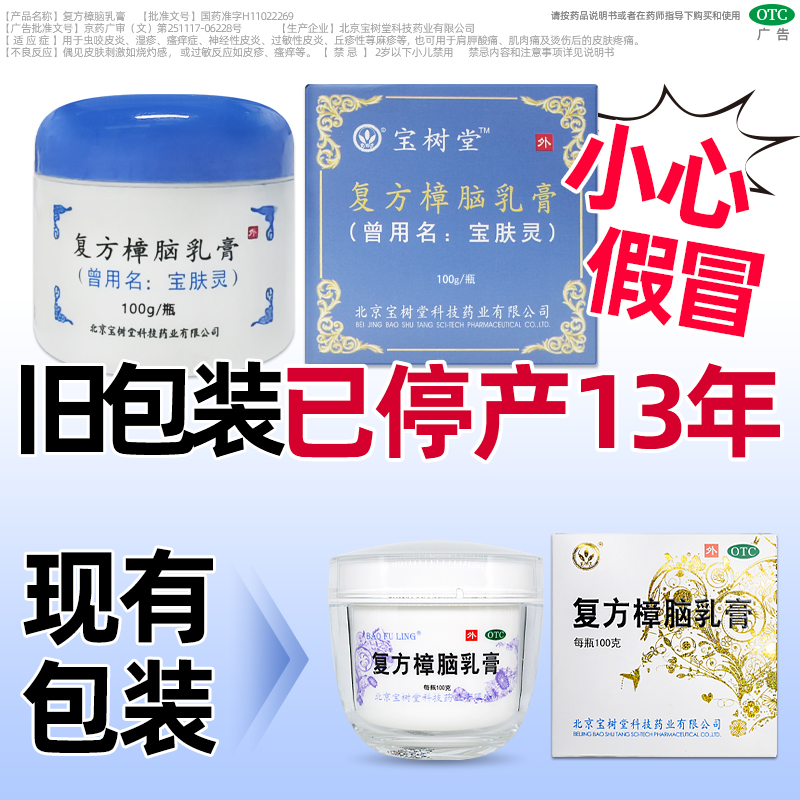 宝树堂宝肤灵寶膚靈复方樟脑乳膏100克湿疹止瘙痒烫伤后疼痛皮炎