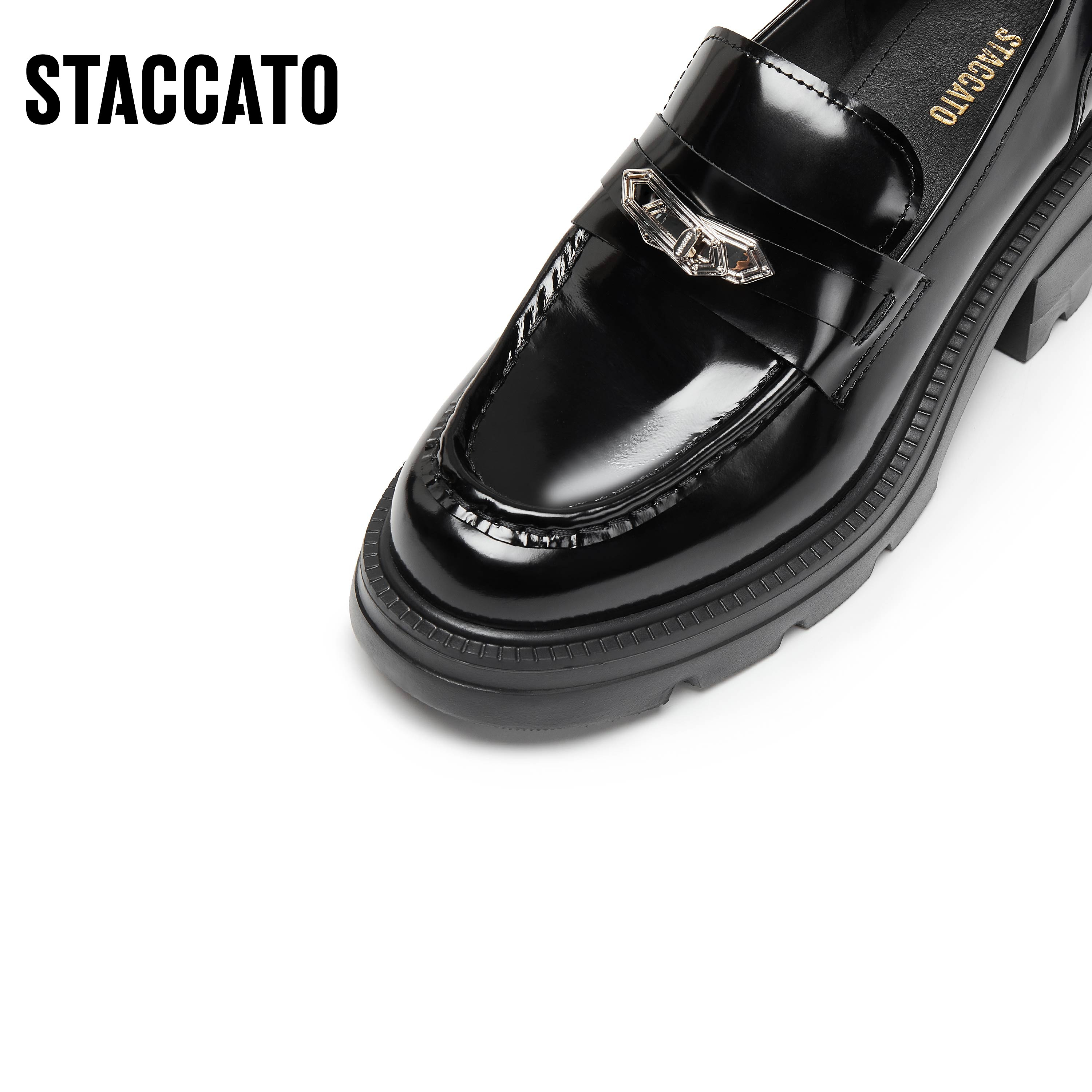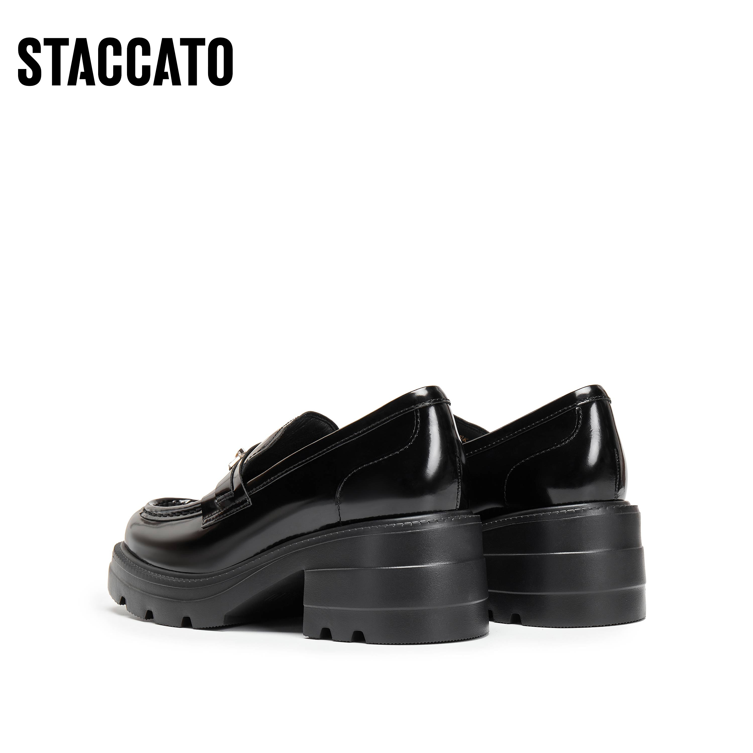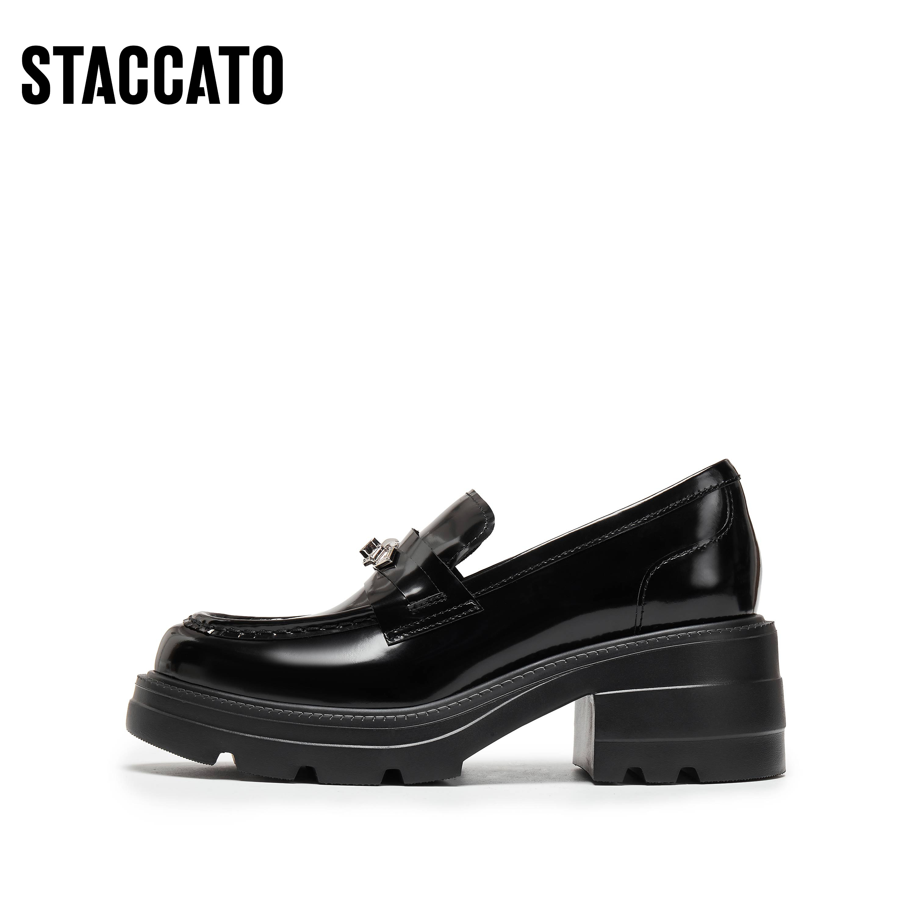 思加图新款英伦风复古乐福鞋厚底增高一脚蹬小皮鞋女鞋子EEZ45CA5