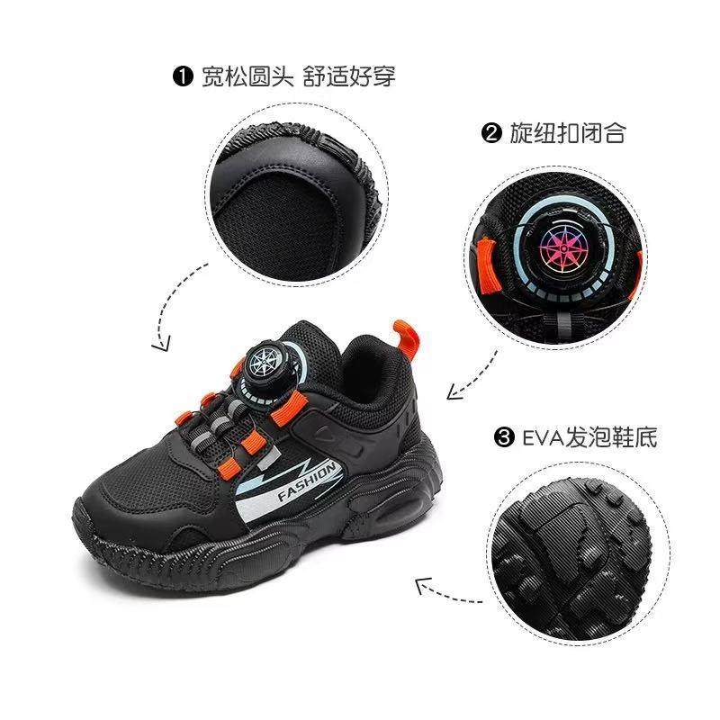 大东中童运动鞋24年秋季新款休闲旋钮扣轻便圆头拼色童鞋24Q1005