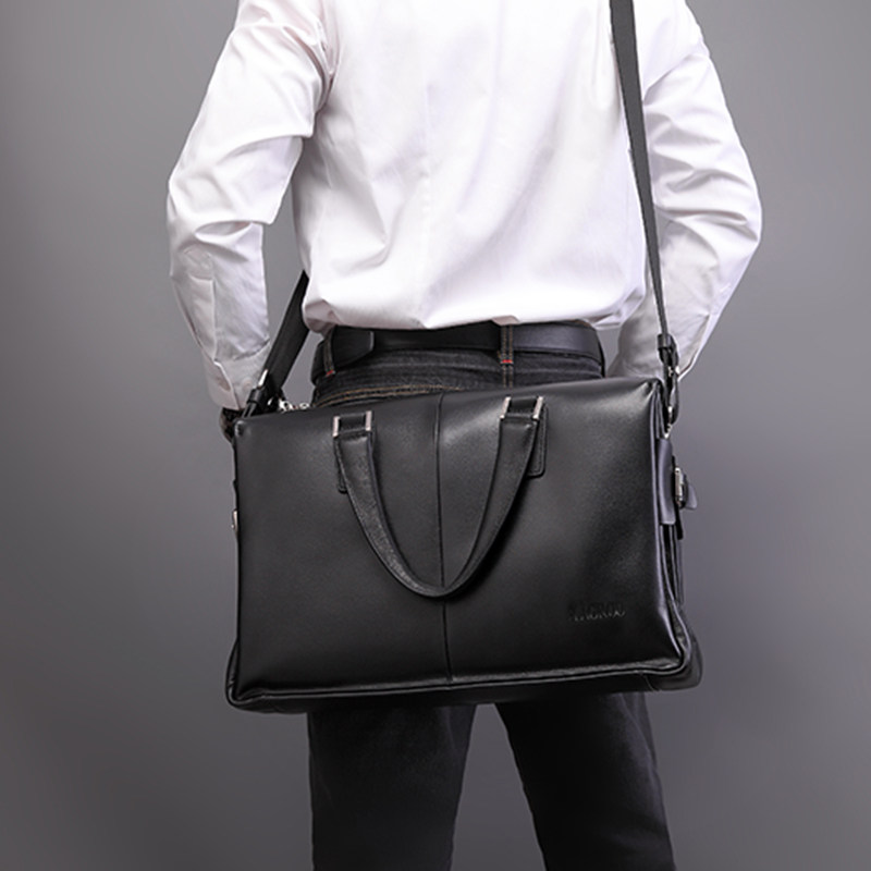 男手提包横款单肩斜挎包软皮大容量头层牛皮公文包男商务真皮男包