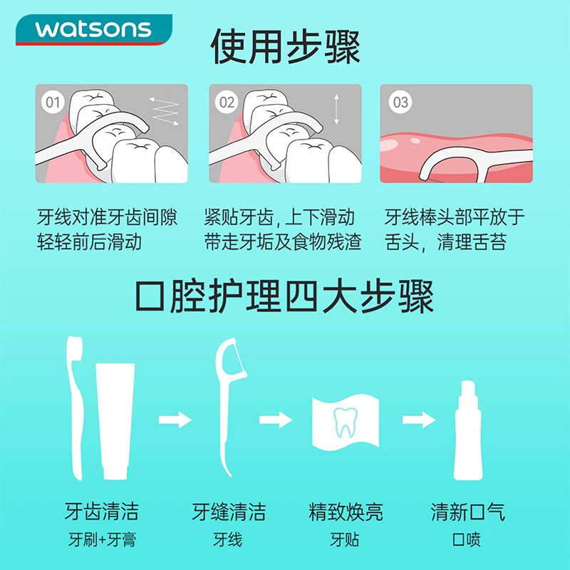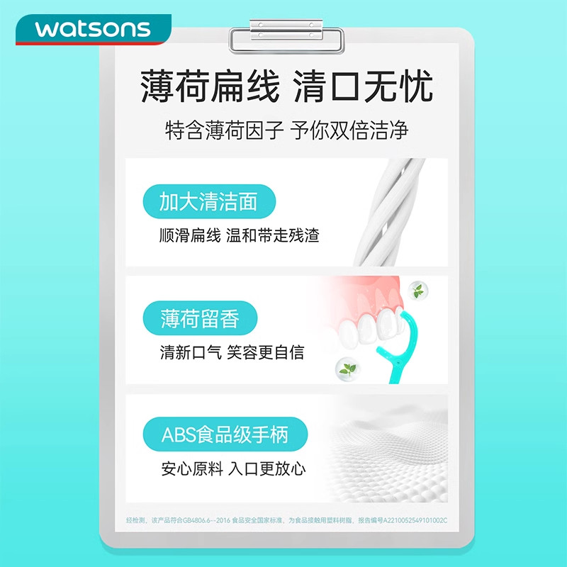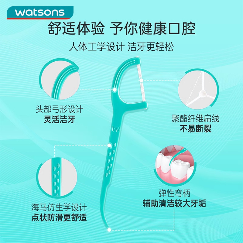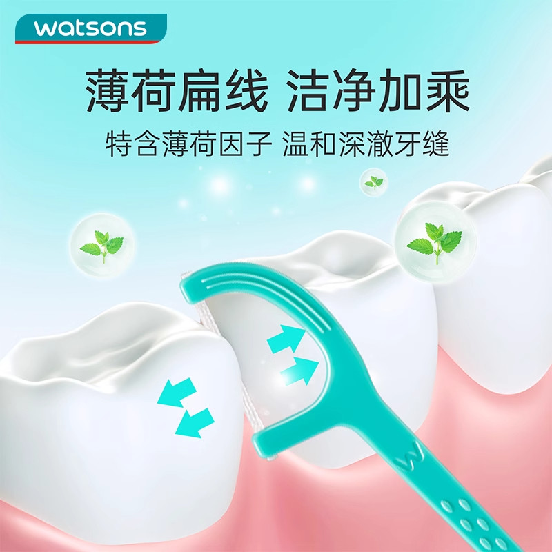 屈臣氏薄荷味扁线护理牙线棒150支家庭装超细牙签线剔牙线棒1802