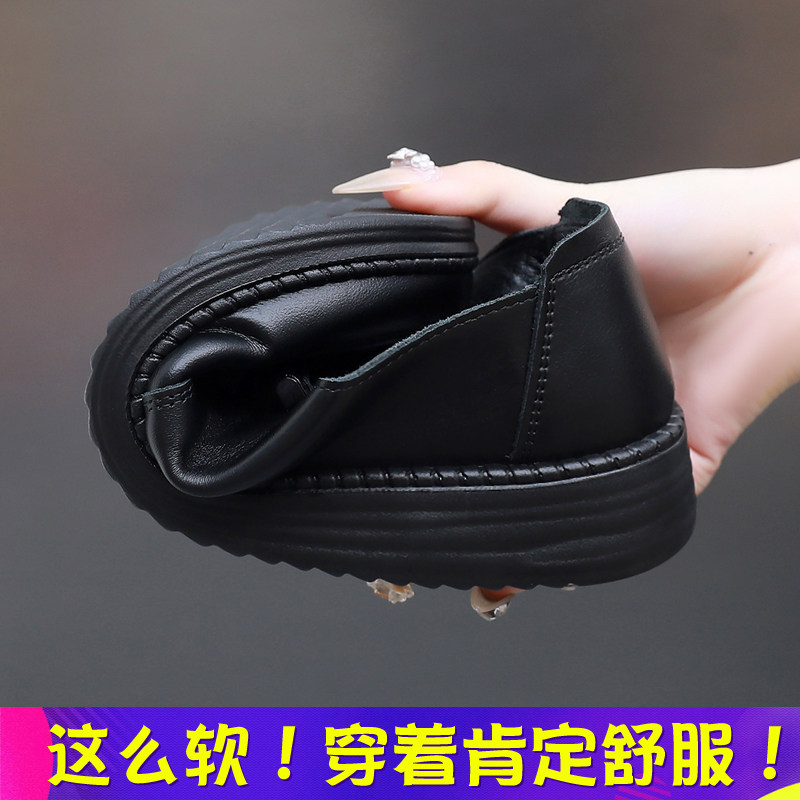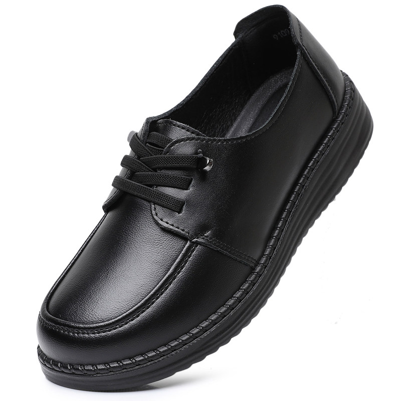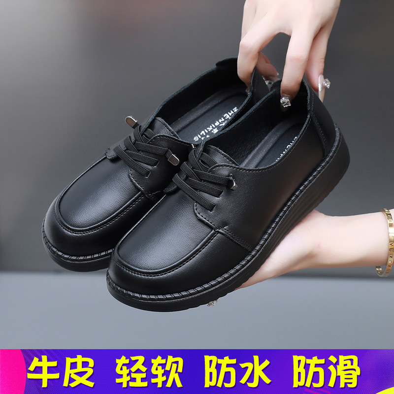 新款真皮女士平底皮鞋轻便柔软防滑防水工作鞋黑中老年妈妈鞋秋冬