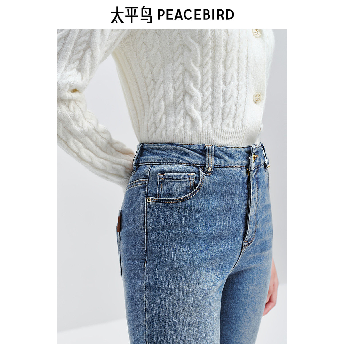 【断码秒杀】太平鸟高腰九分烟管牛仔裤温暖丹宁小直筒法棍牛仔裤