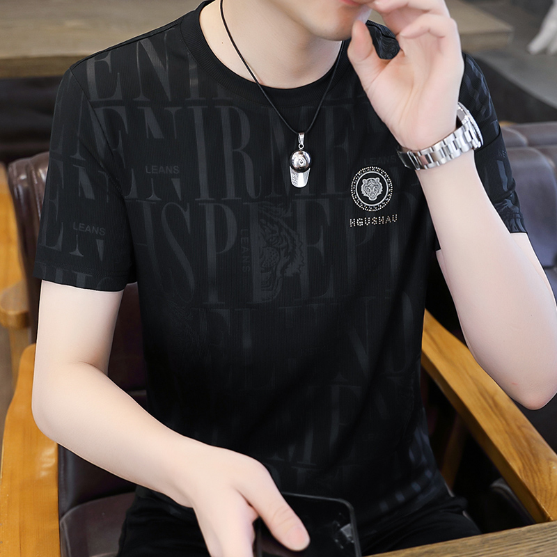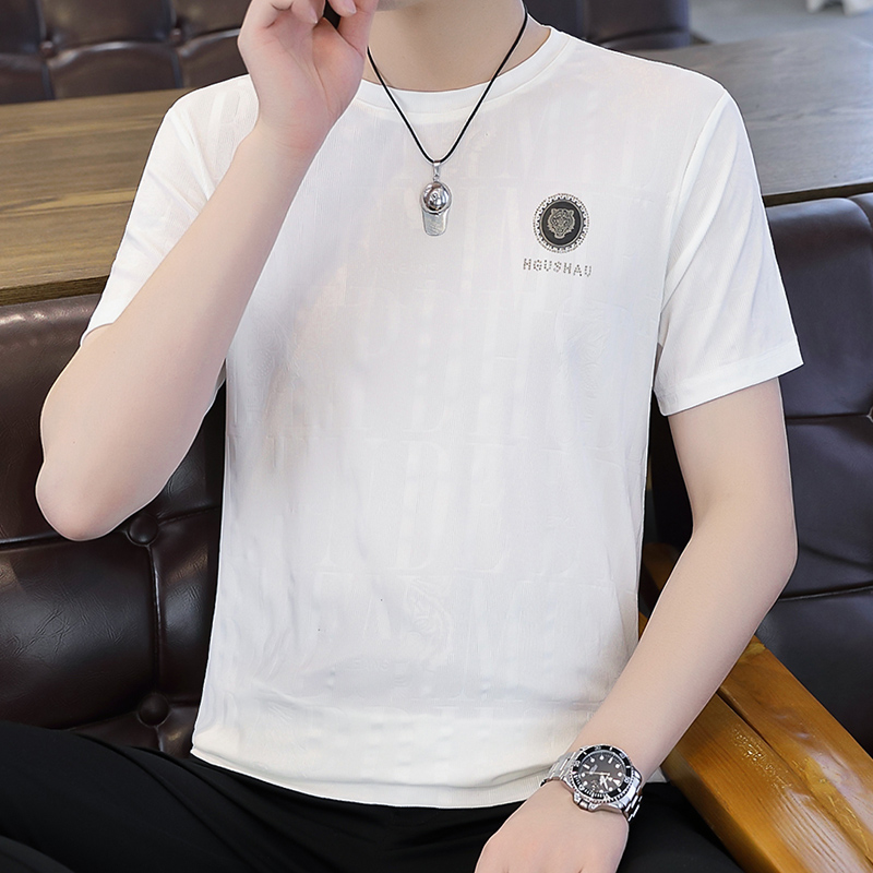 2025夏季新款男士冰丝短袖T恤潮男半袖体恤暗纹提花男装速干上衣