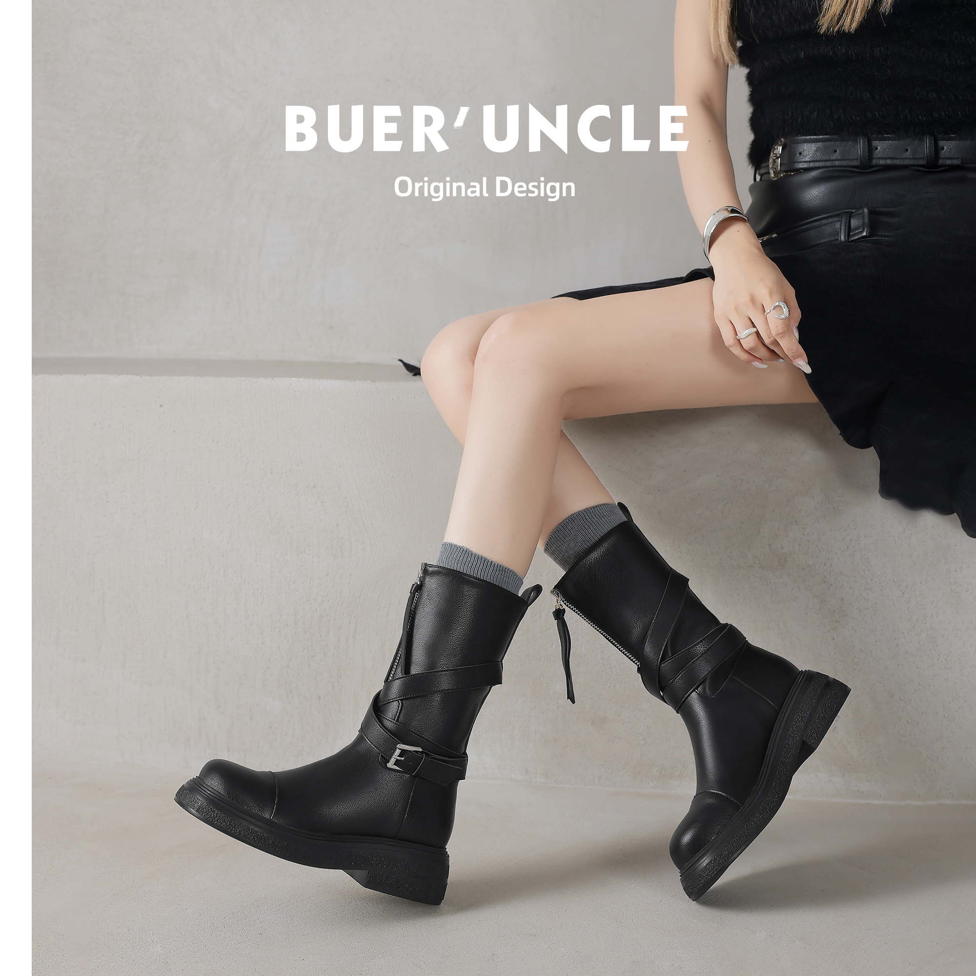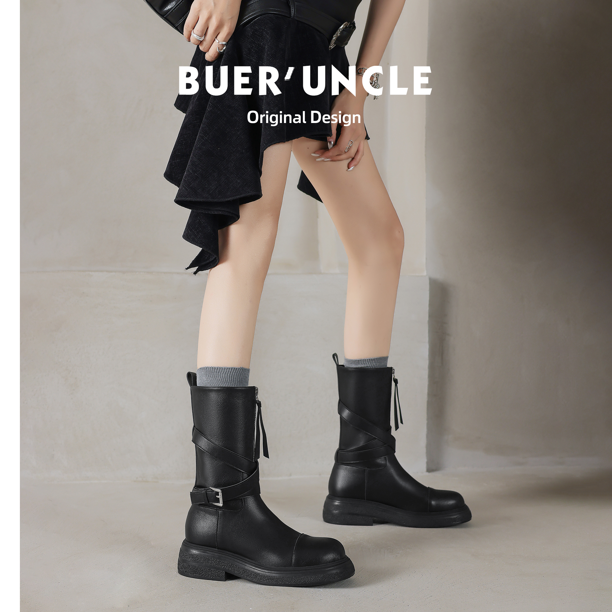 【不二鞋坊】美拉德~真皮中筒马丁靴女2024款秋冬复古英伦风短靴
