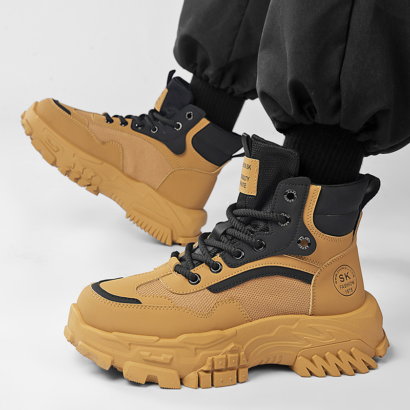 劳保男鞋秋季户外登山防滑耐磨上班工作运动厚底增高黑色马丁靴子