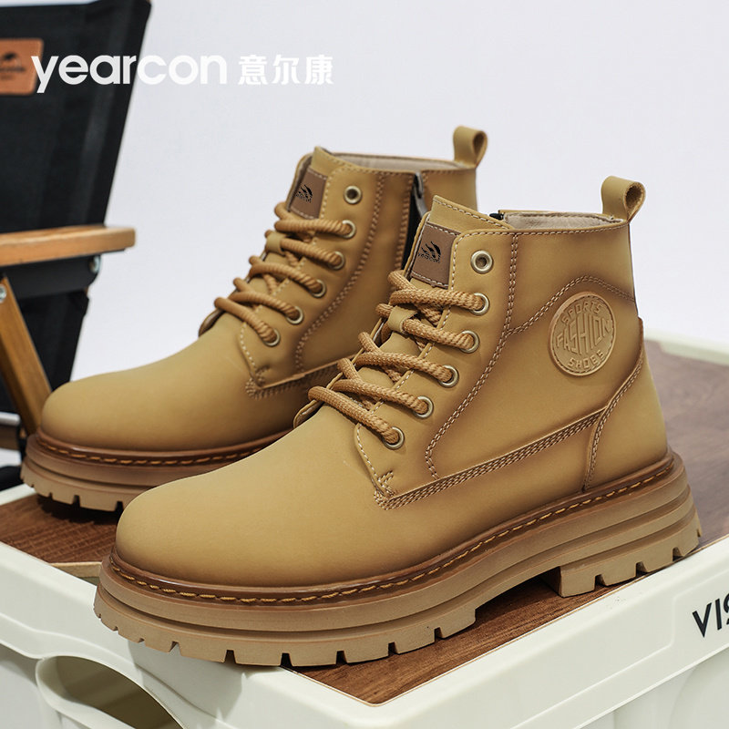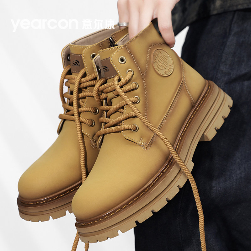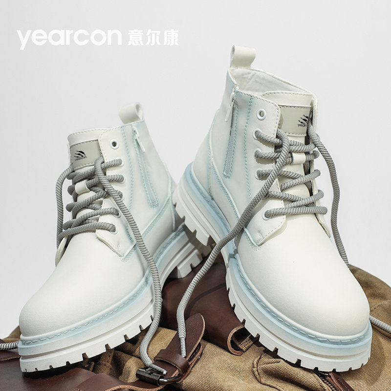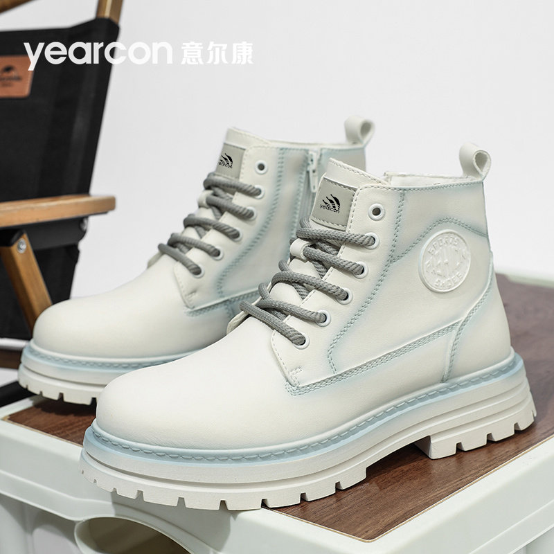 意尔康马丁靴男款白色真皮机车短靴高帮皮鞋男士户外登山工装靴子