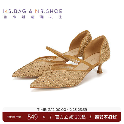 包小姐与鞋先生夏季流沙金网布烫钻低跟半凉鞋女251105