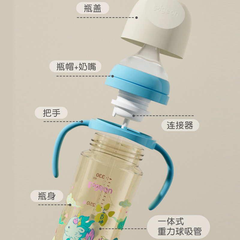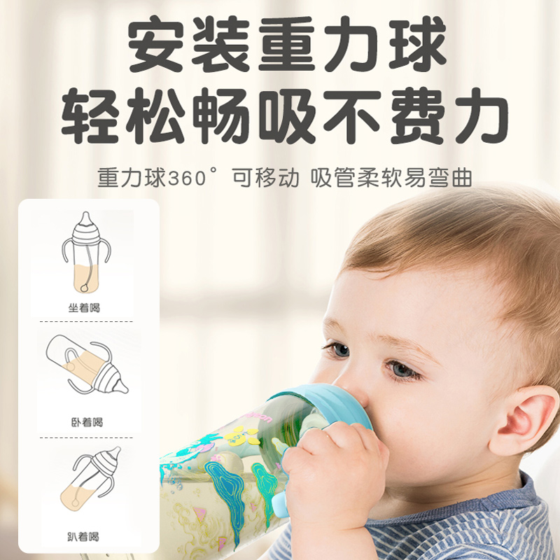 贝亲重力球吸管配件宽口径PPSU吸管奶瓶双把手配件熊猫嘟嘟吸管杯