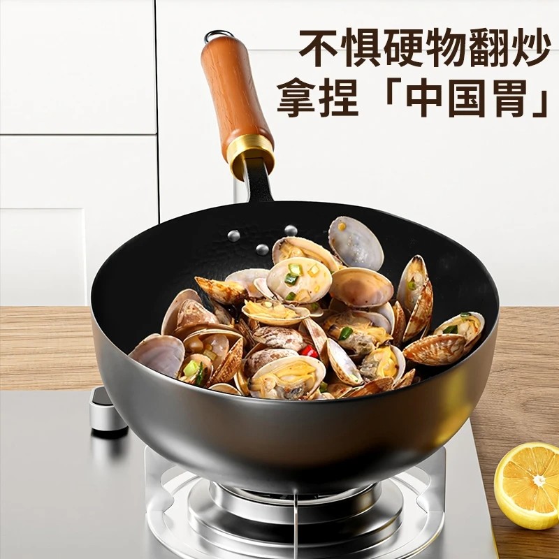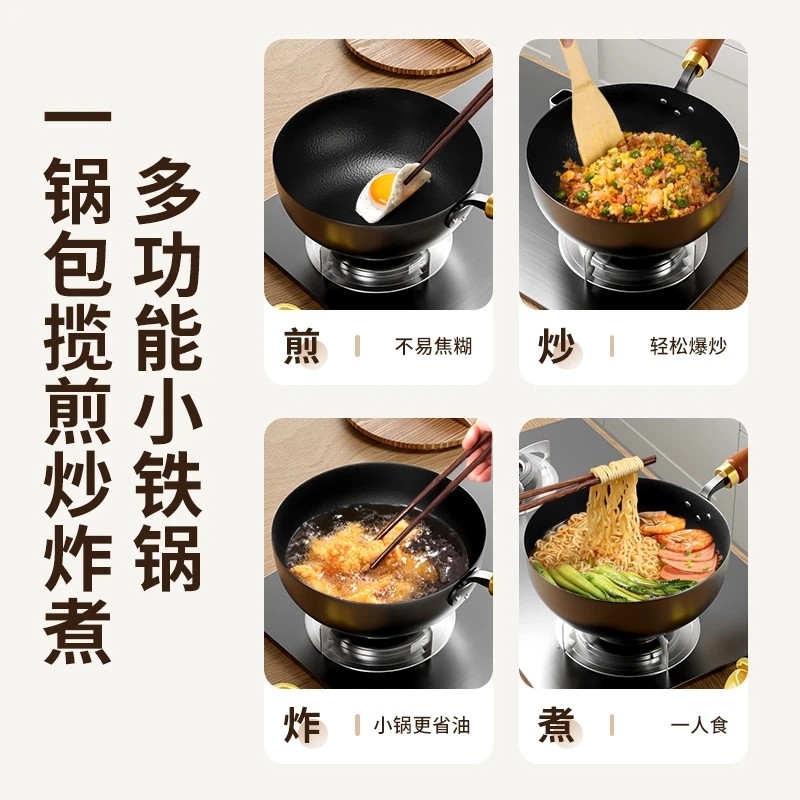 ksise金嫂子锤纹小铁锅无涂层一人食家用平底木盖炒菜炒锅24cm寸