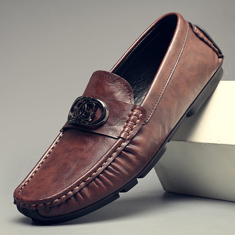 真皮豆豆鞋男2025新款男士休闲高档皮鞋透气软底一脚蹬懒人乐福鞋