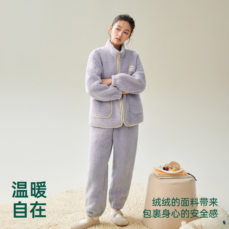 安之伴【巨保暖】北羔绒睡衣女冬季加厚珊瑚绒冬款休闲拉链家居服