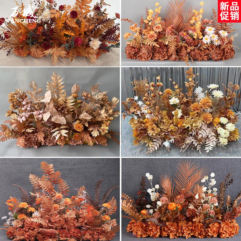 婚庆焦糖色地排花婚礼仿真花t台布置挂花路引花咖色装饰花假花艺
