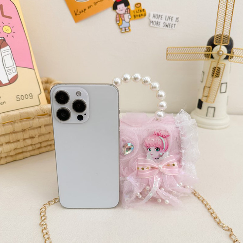 儿童包包女可爱小女孩斜挎包卡通珍珠女童手提包百搭公主小方包潮