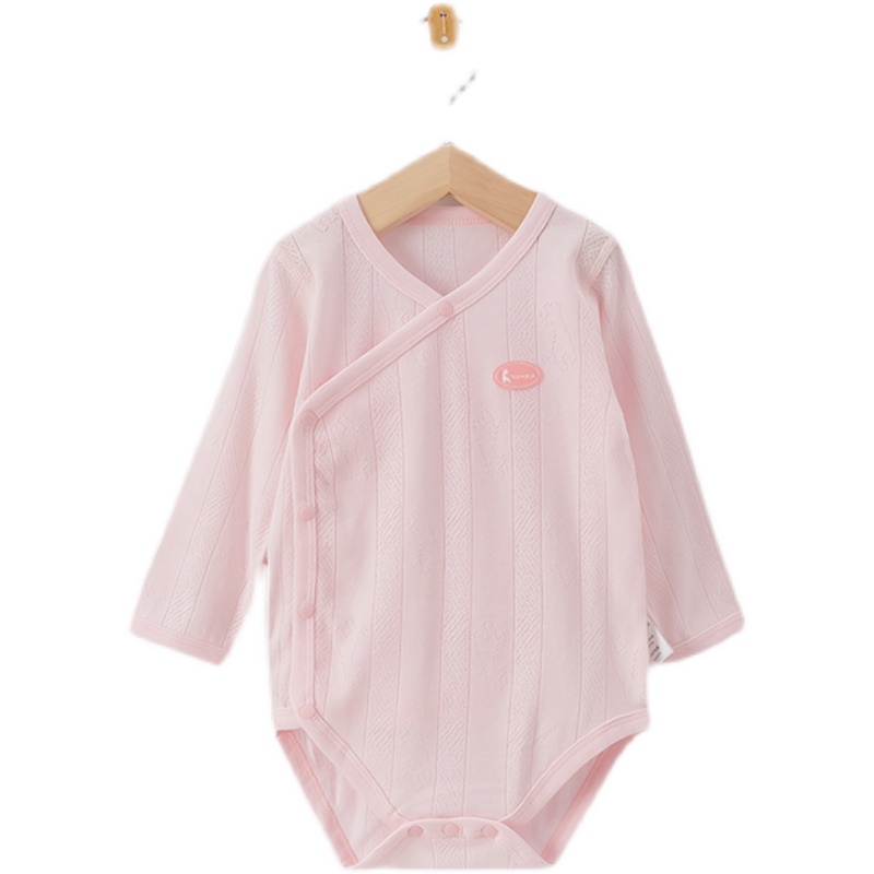 童泰夏季薄款婴儿纯棉斜襟系带三角爬服男女宝宝长袖连体衣包屁衣