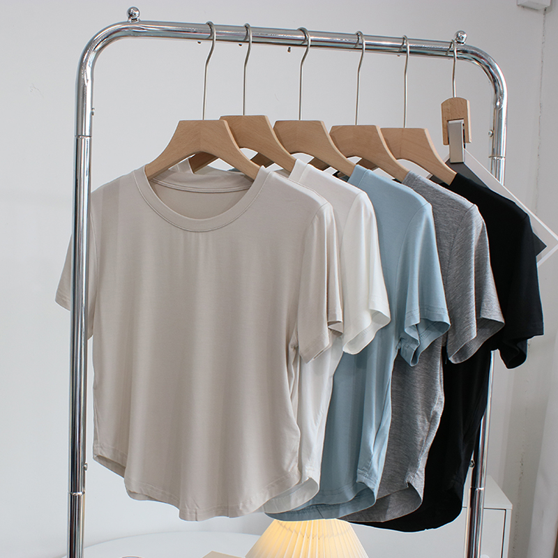 柔软亲肤短款莫代尔t恤女夏 韩版修身显瘦圆领短袖瑜伽舞蹈服上衣
