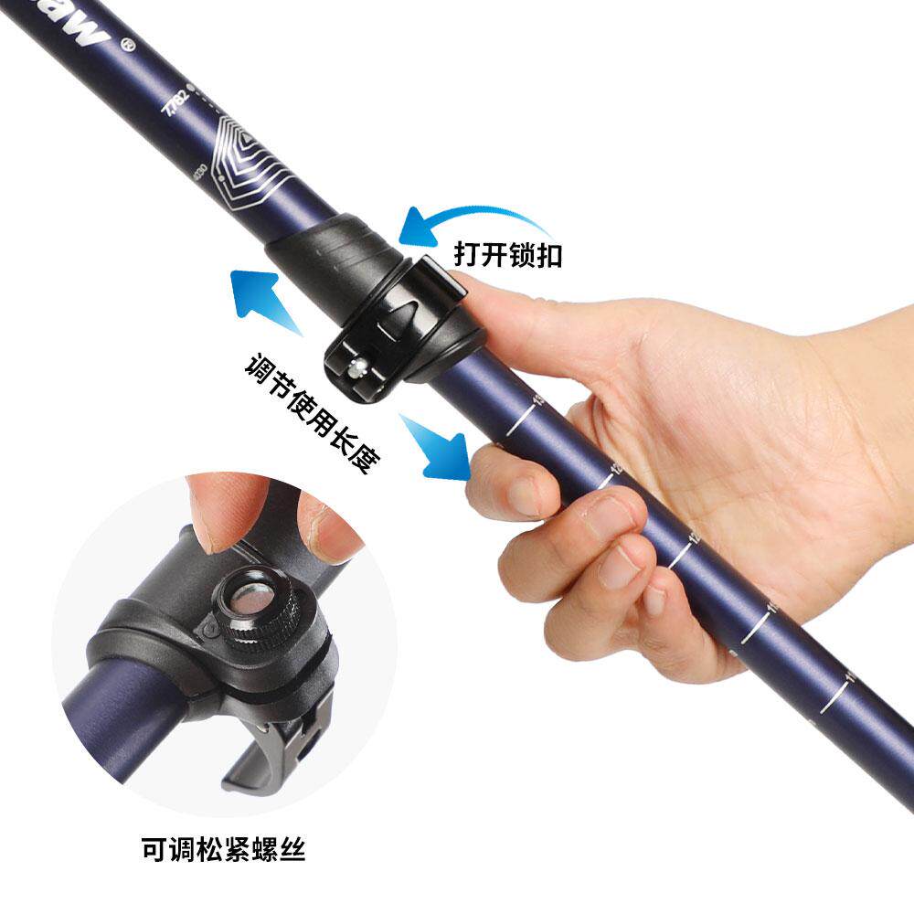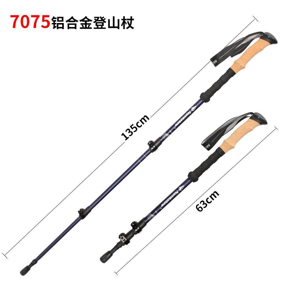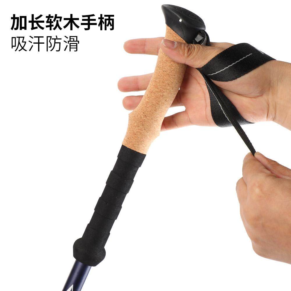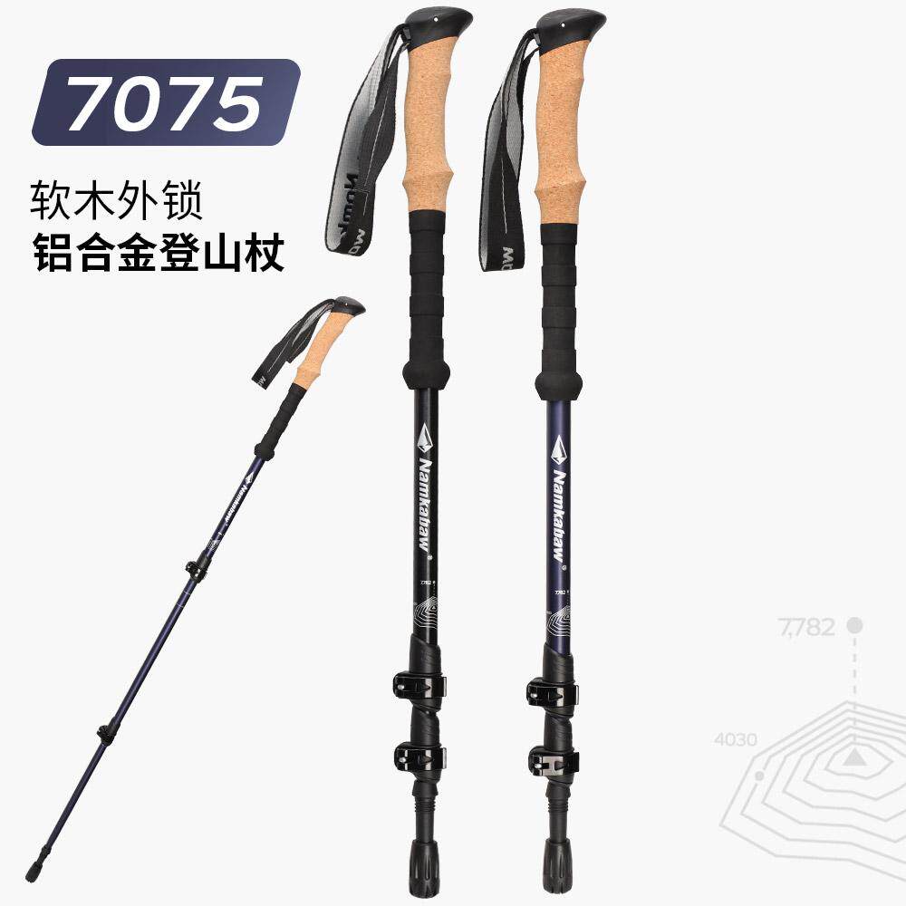 户外高级软木外锁登山杖7075铝合金三节便携伸缩徒步手杖山地拐杖