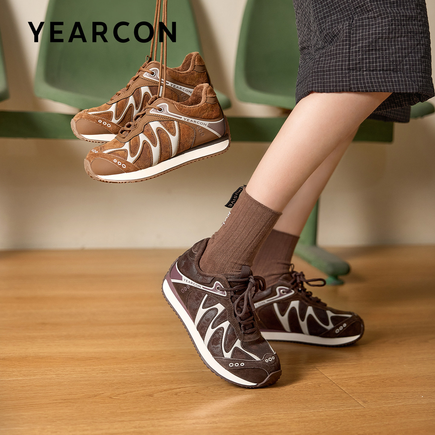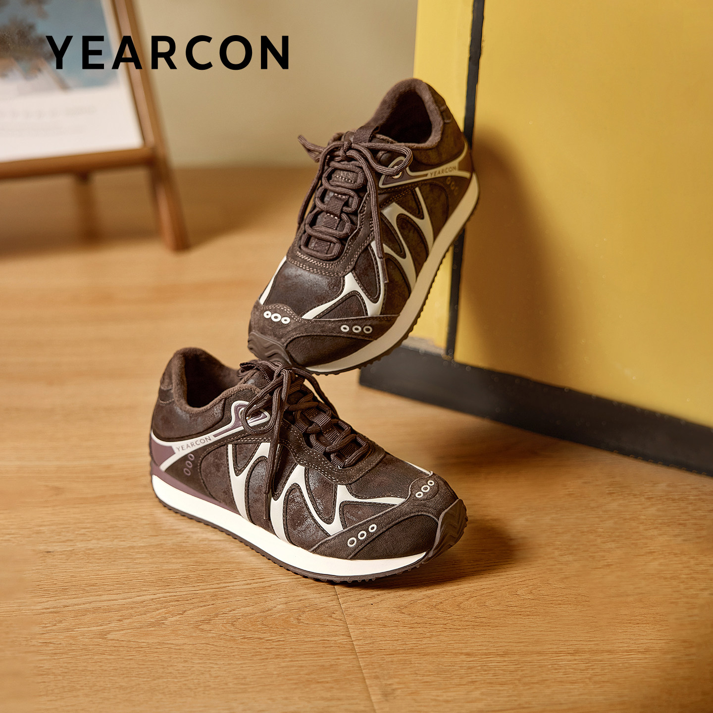 意尔康厚底加绒德训鞋女2025新款冬百搭阿甘鞋休闲运动板鞋老爹鞋