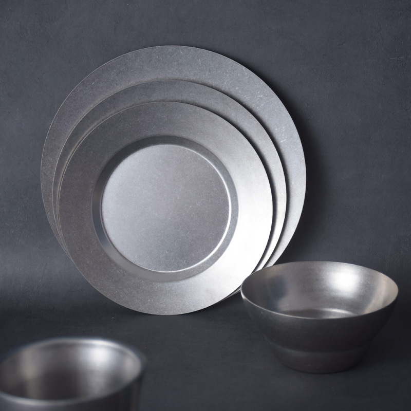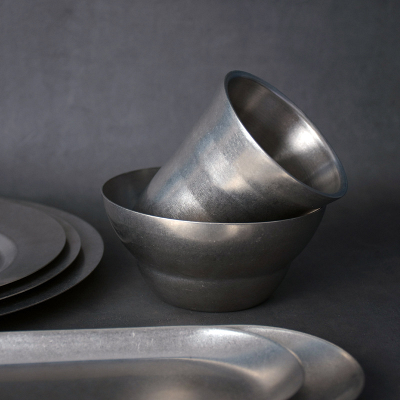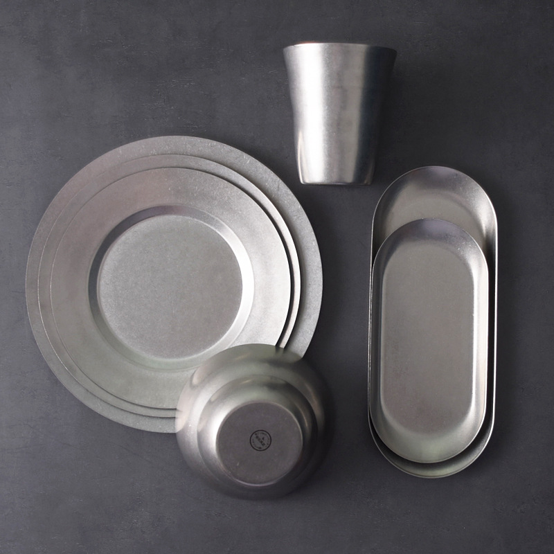 复古磨砂青花系 碗盘杯子椭圆碟餐具不锈钢牛排意面盘子餐厅摄影
