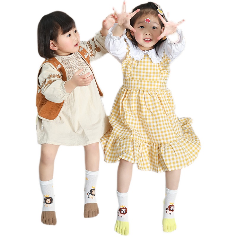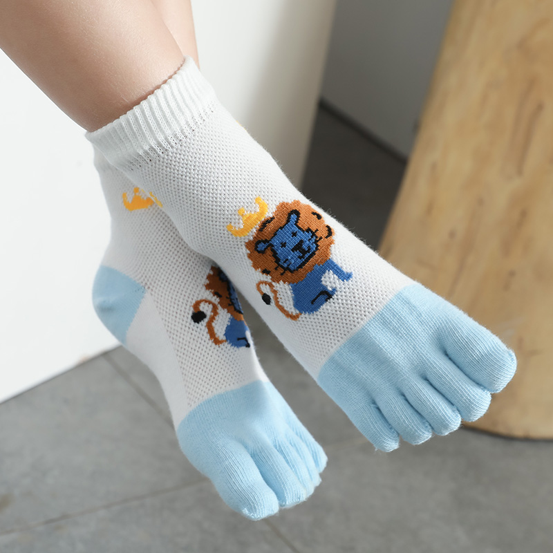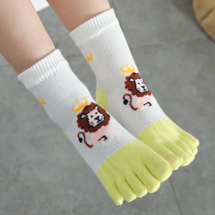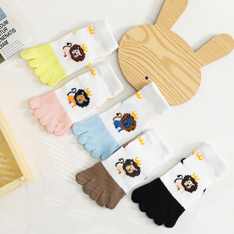 儿童五指袜纯棉卡通狮子中筒吸汗防臭运动全棉分趾袜子3双装包邮