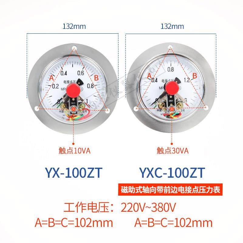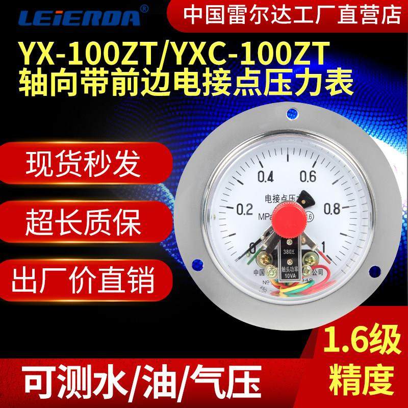 轴向带前边电接点压力表磁助式YX-100ZT YXC-100ZT 0-1.6Mpa 2.5