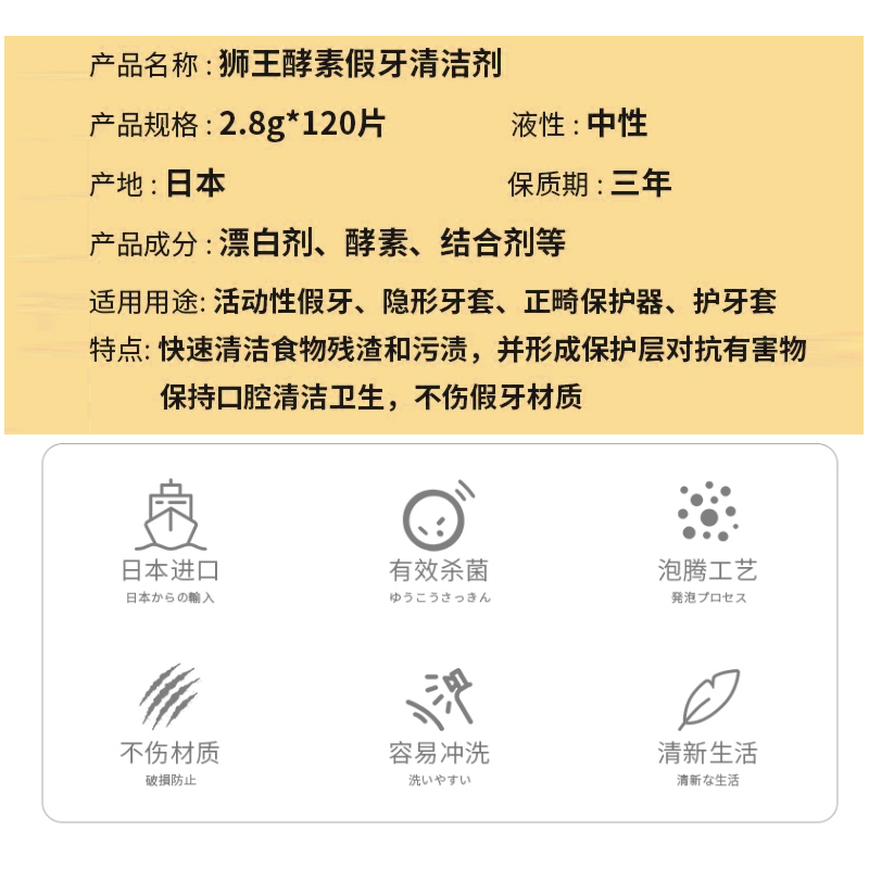 日本保持器清洁片狮王假牙 牙套泡腾洗牙片神器清洗剂消毒隐适美