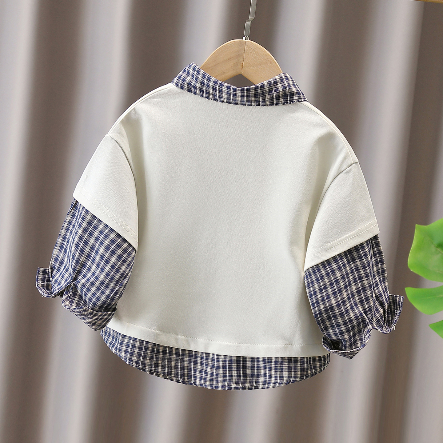 儿童洋气翻领卡通卫衣男女童2025春秋装宝宝打底衫小童假两件上衣