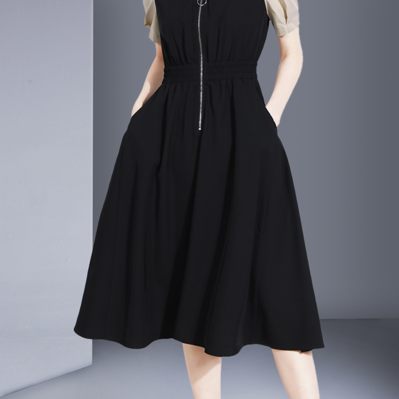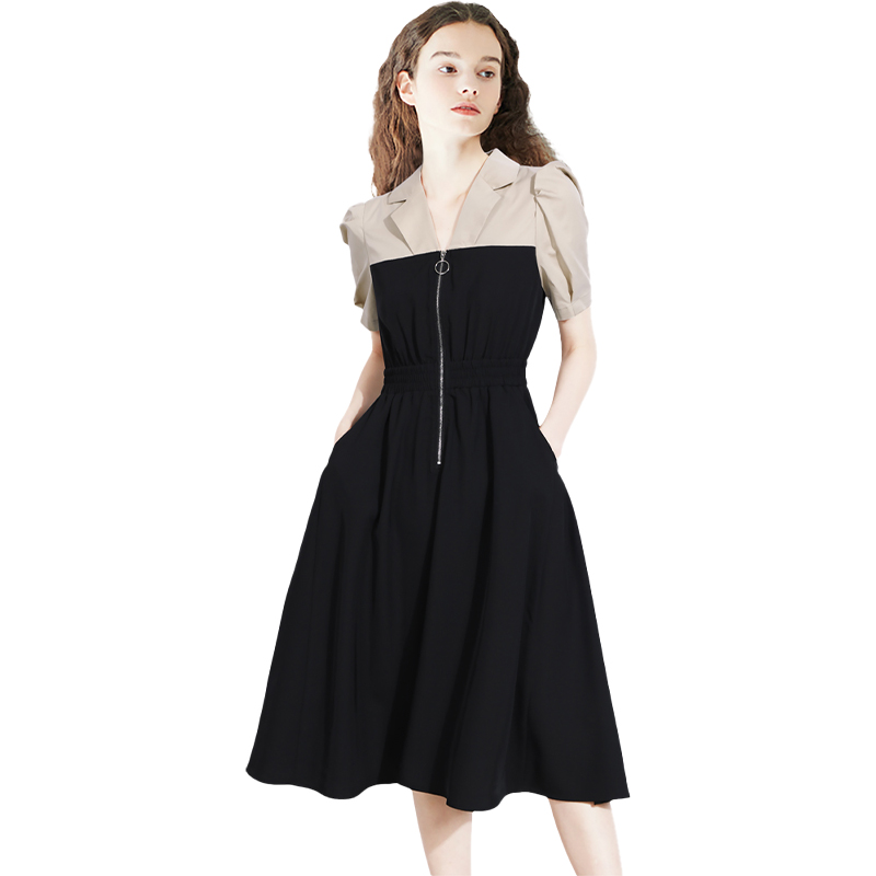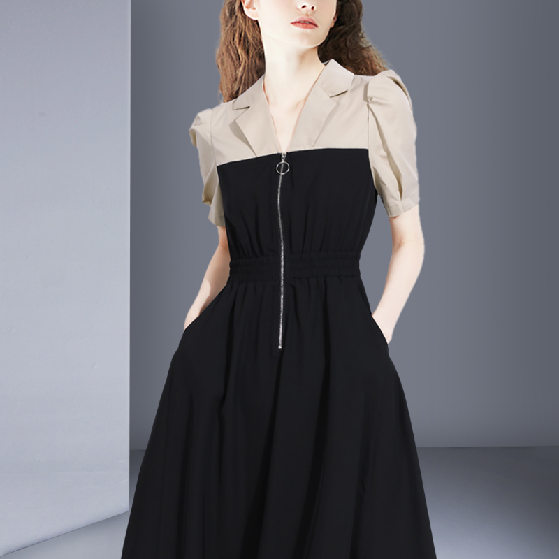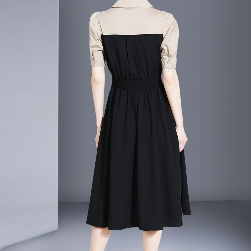 2025夏季新款拼接假两件法式高级感气质修身显瘦别致衬衫连衣裙