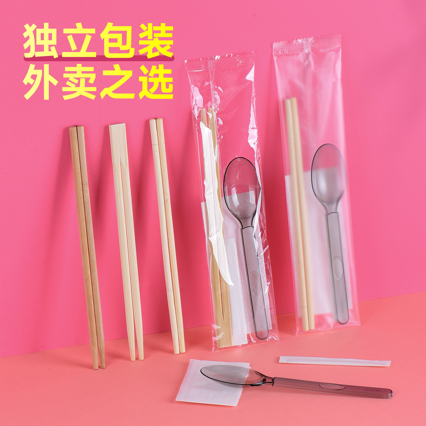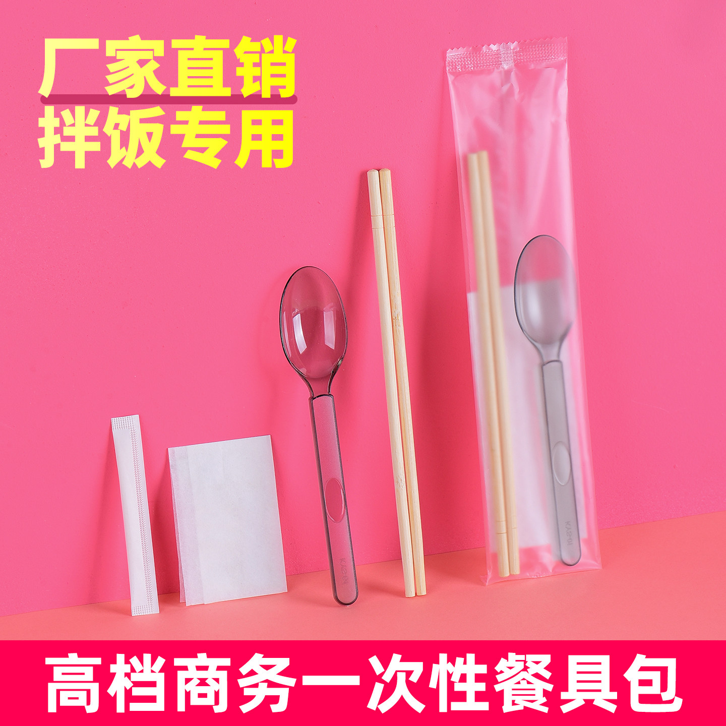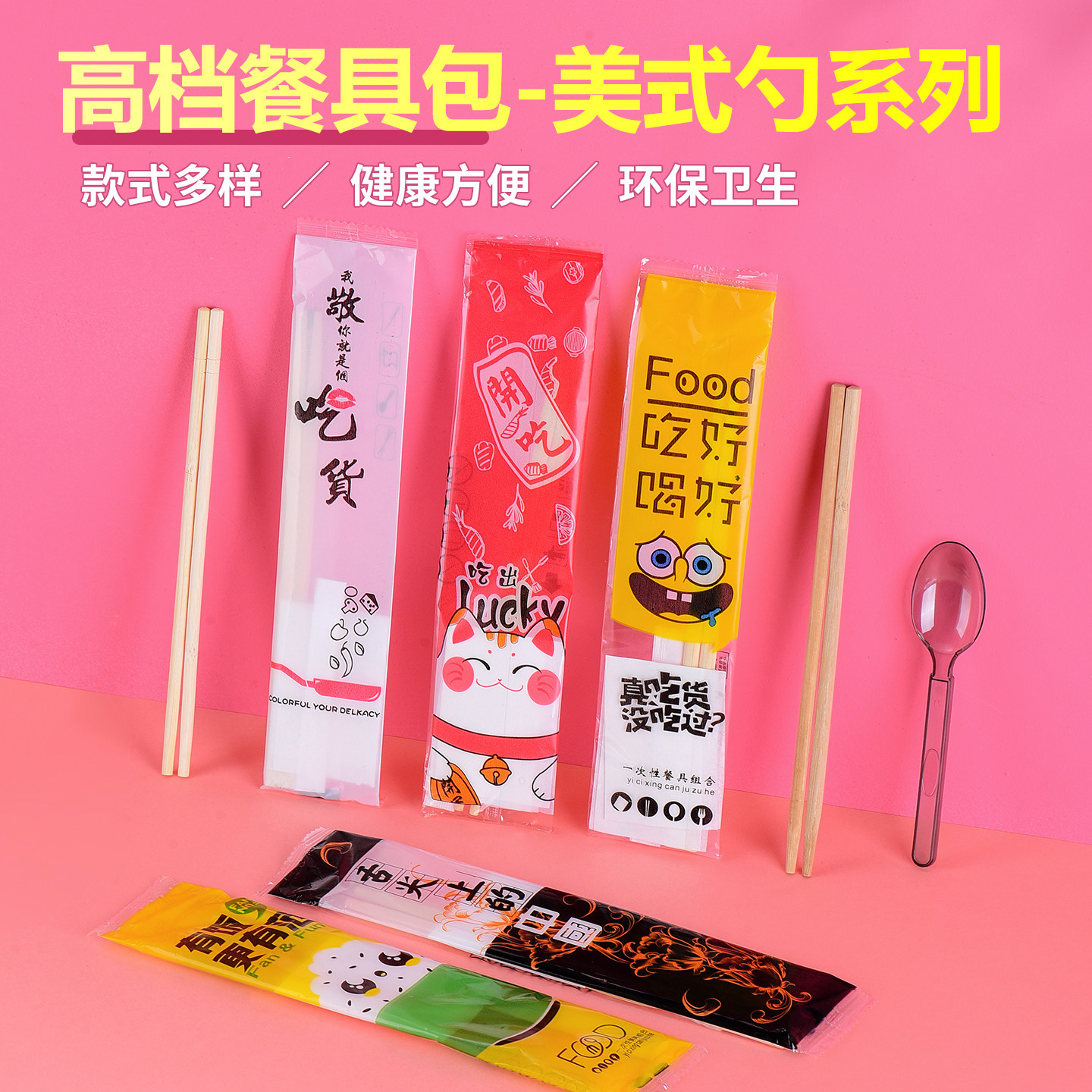 一次性筷子四件套美式勺餐包外卖拌饭轻食磨砂硬勺带纸巾牙签定制