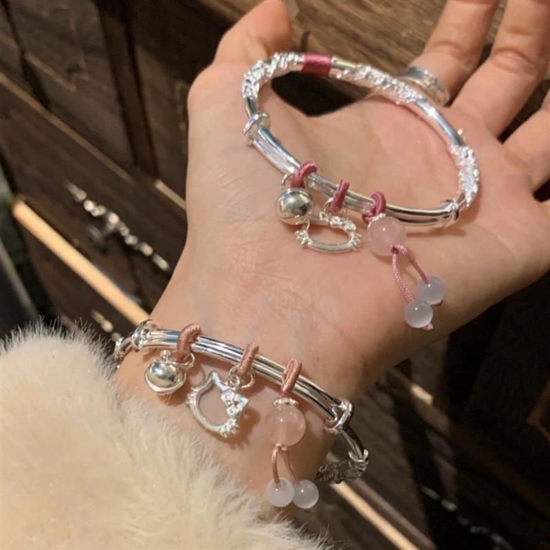 繁花似锦Kitty猫纯银手镯女999实心足银镯子年轻款送女友生日礼物