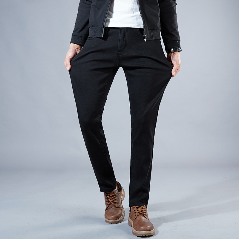 欧洲站轻奢大牌刺绣黑色牛仔裤男秋冬加绒款纯棉弹力修身小脚长裤