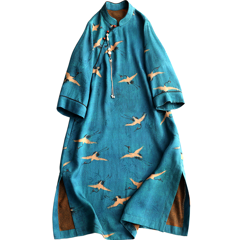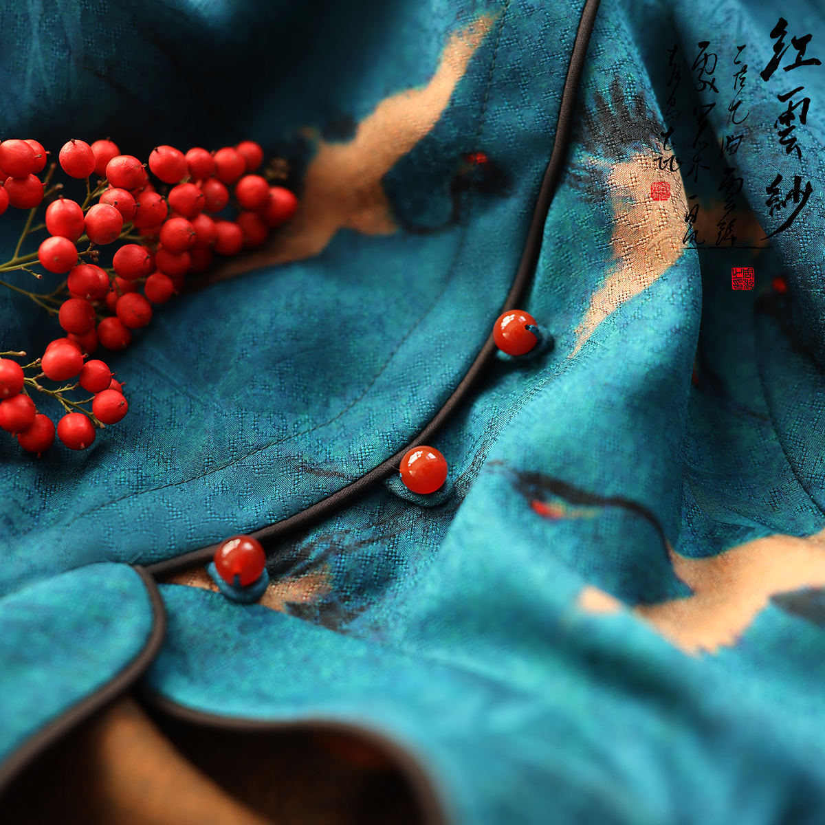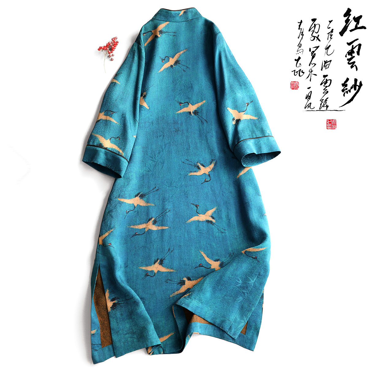 云澍 花罗红云纱新中式改良旗袍连衣裙真丝桑蚕丝国风复古中长裙